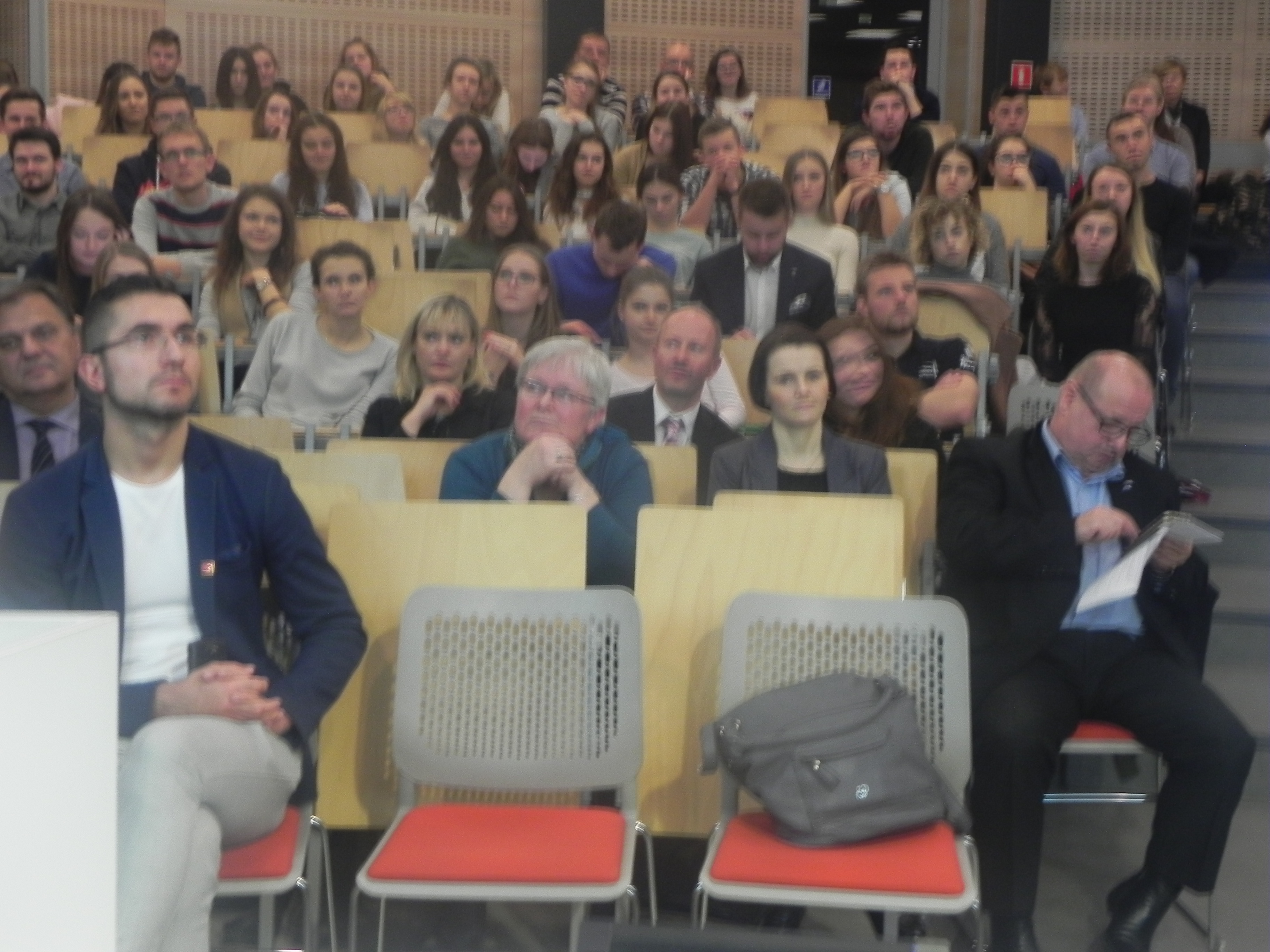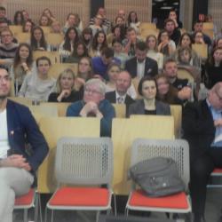 Dziekan Wydziału Zarzadzania dr hab. inż. Piotr Łebkowski prof. AGH witając wszystkich zebranych podkreślił jak ważna jest przyszłość i odpowiednie się do niej przygotowanie, omówił możliwości uczelni związane z kształceniem młodzieży i przygotowaniem kadr dla biznesu oraz oferty. Następni prelegenci poruszyli problem demografii Polski zwracając uwagę na starzejące się społeczeństwo. Przedstawiciel z Instytutu PIAR podkreślił, że matematyka jest królową nauk, a inżynierowie są cennymi pracownikami. Przedstawiciel Credit Agricole w swoim wystąpieniu zachęcał studentów do pracy w bankowości i zwrócił uwagę studentom co jest ważne podczas rozmowy kwalifikacyjnej, jak właściwie należy się zaprezentować i na co zwracają uwagę przyszli pracodawcy. Były też prezentowane ciekawe oferty dla studentów np. specjalistka ds. projektów unijnych omówiła projekt realizowany w ramach POWER w ramach, którego organizowanych jest wiele szkoleń i warsztatów dla studentów.